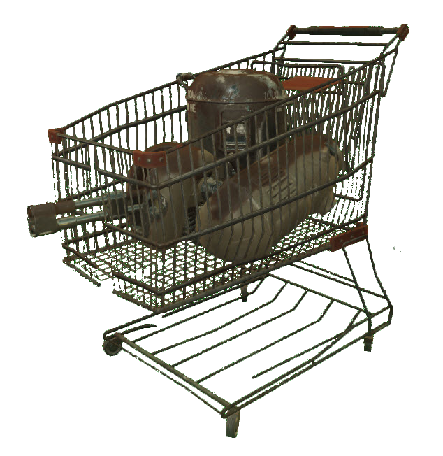 A machinegun turret placed in a shopping cart. These have the same stats as a regular machinegun turret, but cannot rotate.