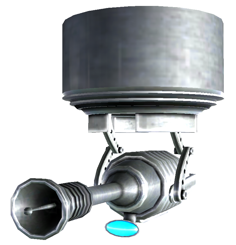 These can be found in buildings and on bridges and ceilings. A couple are found at Fort Independence. These turrets are often used by organizations such as the Brotherhood Outcasts, but can be found widely across the wasteland. Even raiders use them as sentries. They can be frenzied just like any other turret when the player cripples the lens.