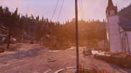 Monongah is a small pre-War town near the Monongah power plant at the border of the Savage Divide and the Forest regions of Appalachia. The Scorched and radrats can roam the area, in addition to Liberators. The town has a rough circle shape, centered around the main street passing through the town and bisecting it into two halves. The northern half contains the local police station in the northwest, with residential buildings occupying the remainder of the area. The southern half includes the church in the western part, a house ruined by a giant boulder (the steamer trunk is right next to it), and the local stores on the southern edge.