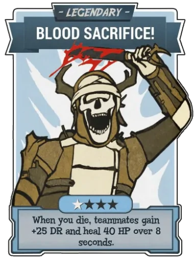 Blood Sacrifice! is a legendary perk 在辐射76,引入于廢土利眾更新 .