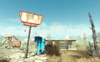 Before the Great War , the location was the site of a diner and Red Rocket filling station on the outskirts of Nuka-World. By 2287, the site has become a camp for a small group of Hubologists , led by Dara Hubbell . During the quest Trip to the Stars , the Hubologists will abandon the camp in favor of the Nuka-World junkyard .