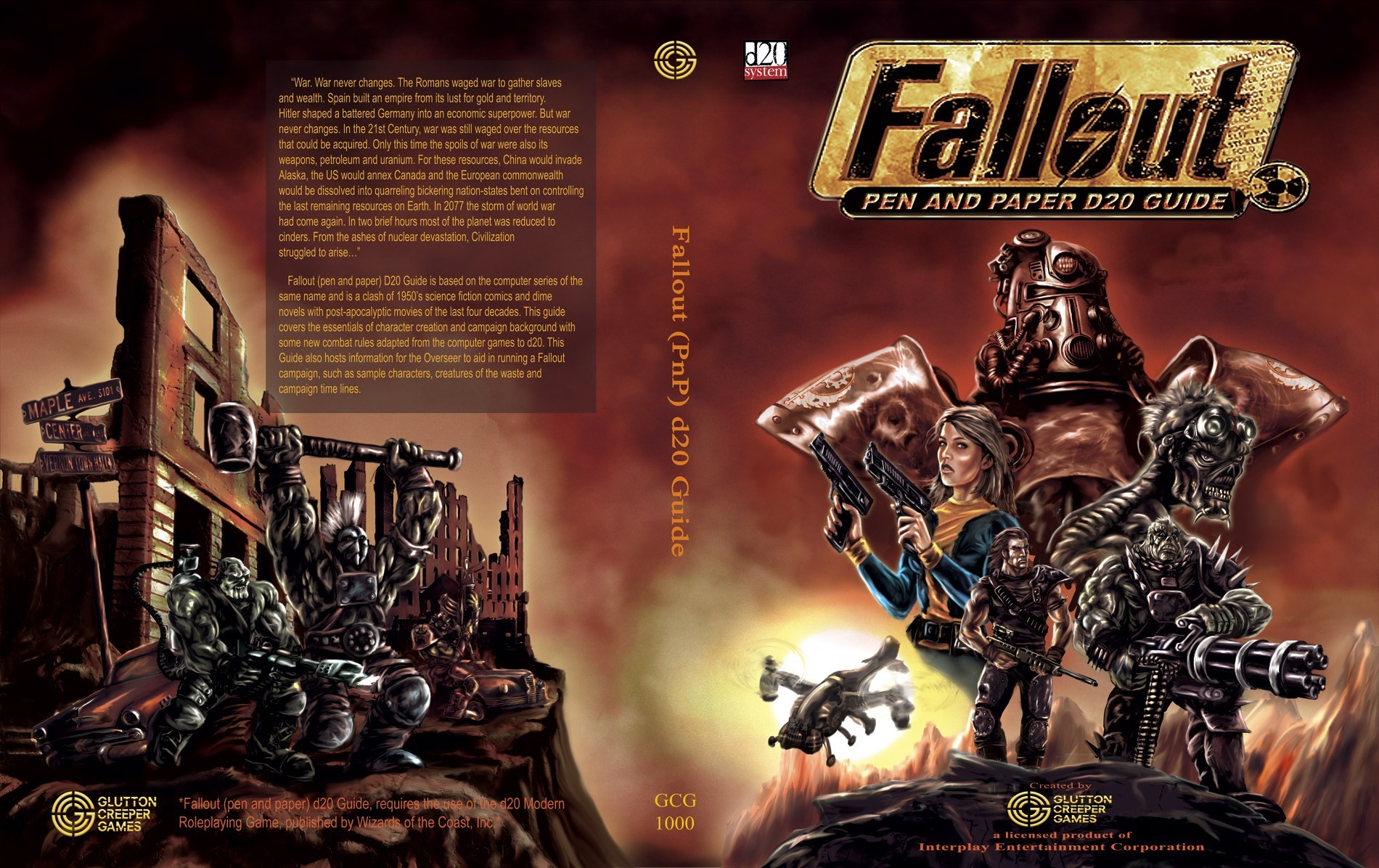On June 10, 2006 GCG finished contract negotiations with Interplay for a license to create a d20 Modern OGL setting for Fallout. The products announced by Glutton Creeper were the Player's Guide, the Campaign Guide and the Organization Companion Guide.