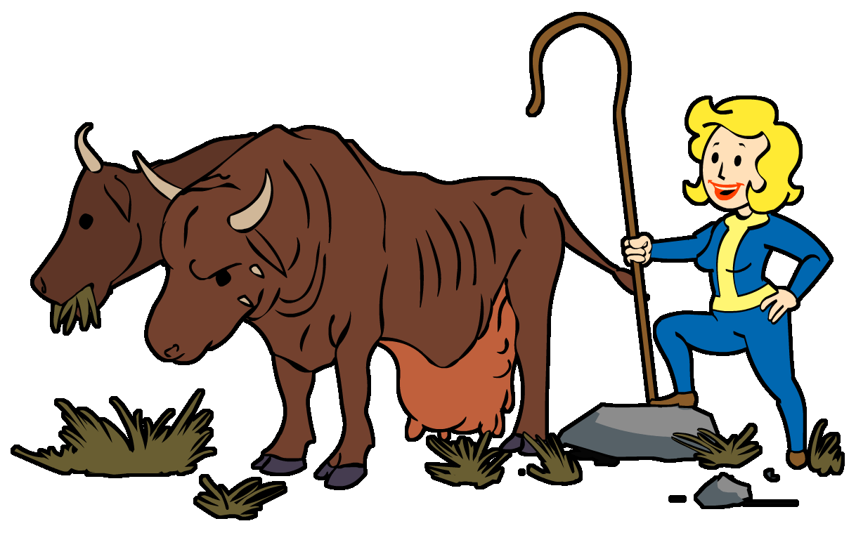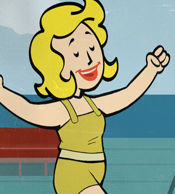 - ↑ Fallout 4 loading screens: "While Vault-Tec's Vault Boy is generally identified as the company's mascot, he is often joined (or replaced) by his equally popular female counterpart, Vault Girl."