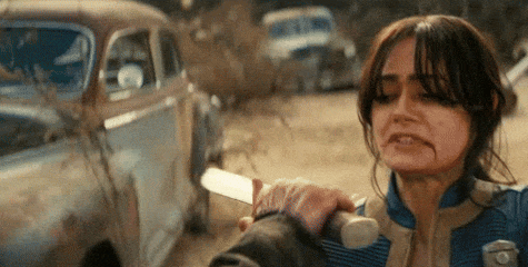 Once they were closer to the Super Duper Mart, Lucy's growing thirst compelled her to drink from a highly irradiated puddle, inviting further mockery from her captor over the Vault dweller becoming more like a wastelander like himself. A coughing fit caused by his drug withdrawal symptoms gave Lucy a window to escape; however, her flight was cut short when the Ghoul lassoed her to the ground. The ensuing scuffle led to Lucy biting his index finger off in desperation; in response, he used his knife to cut off one of her fingers before forcing her to continue their march.