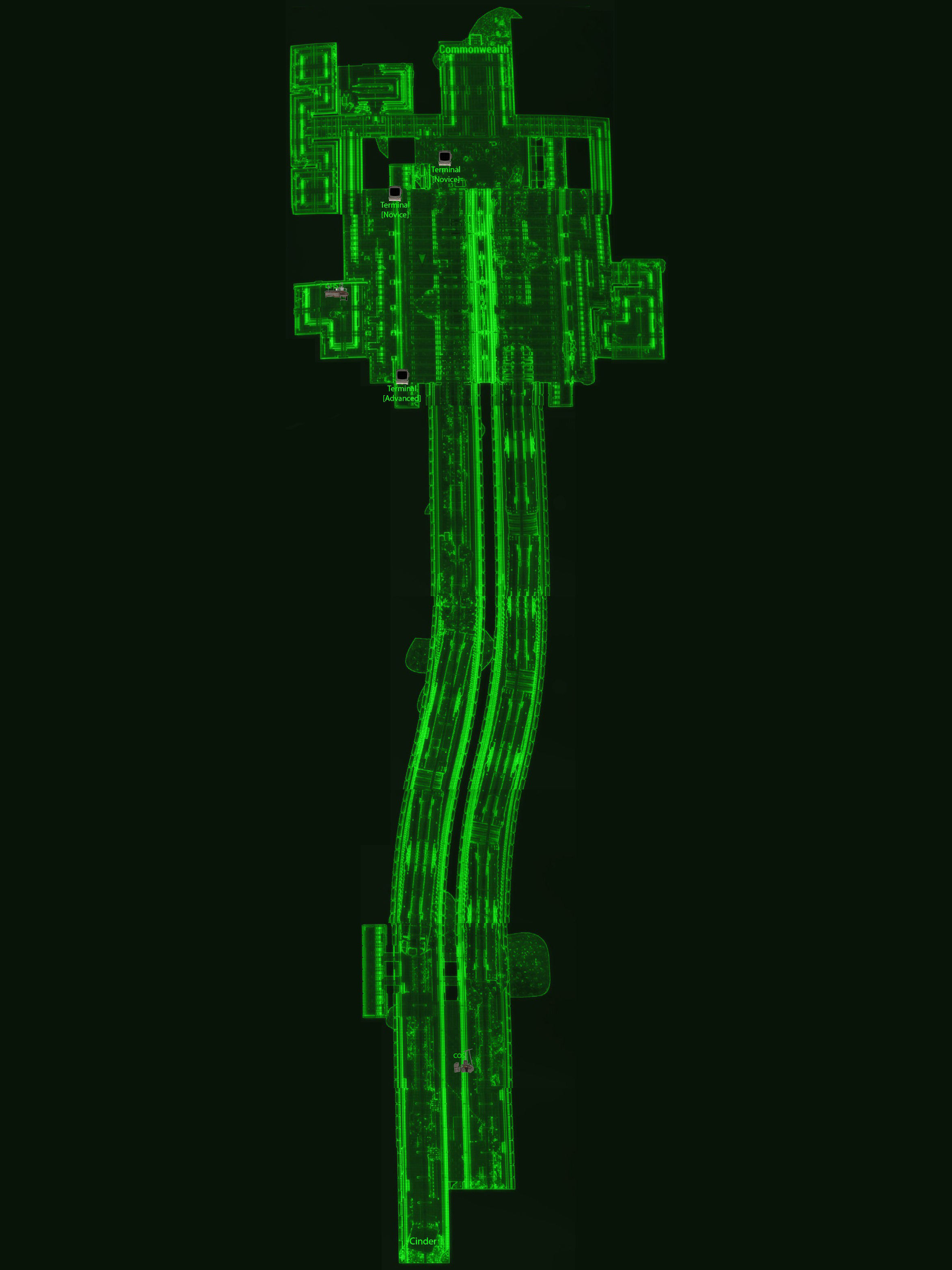 Similar to the surrounding area above ground, the station itself is run by raiders. At the end of the station there is a unique raider called Cinder. In the first big area one comes to, there is an Advanced terminal. Hacking it will open a door to a small room containing jet and a duffle bag.