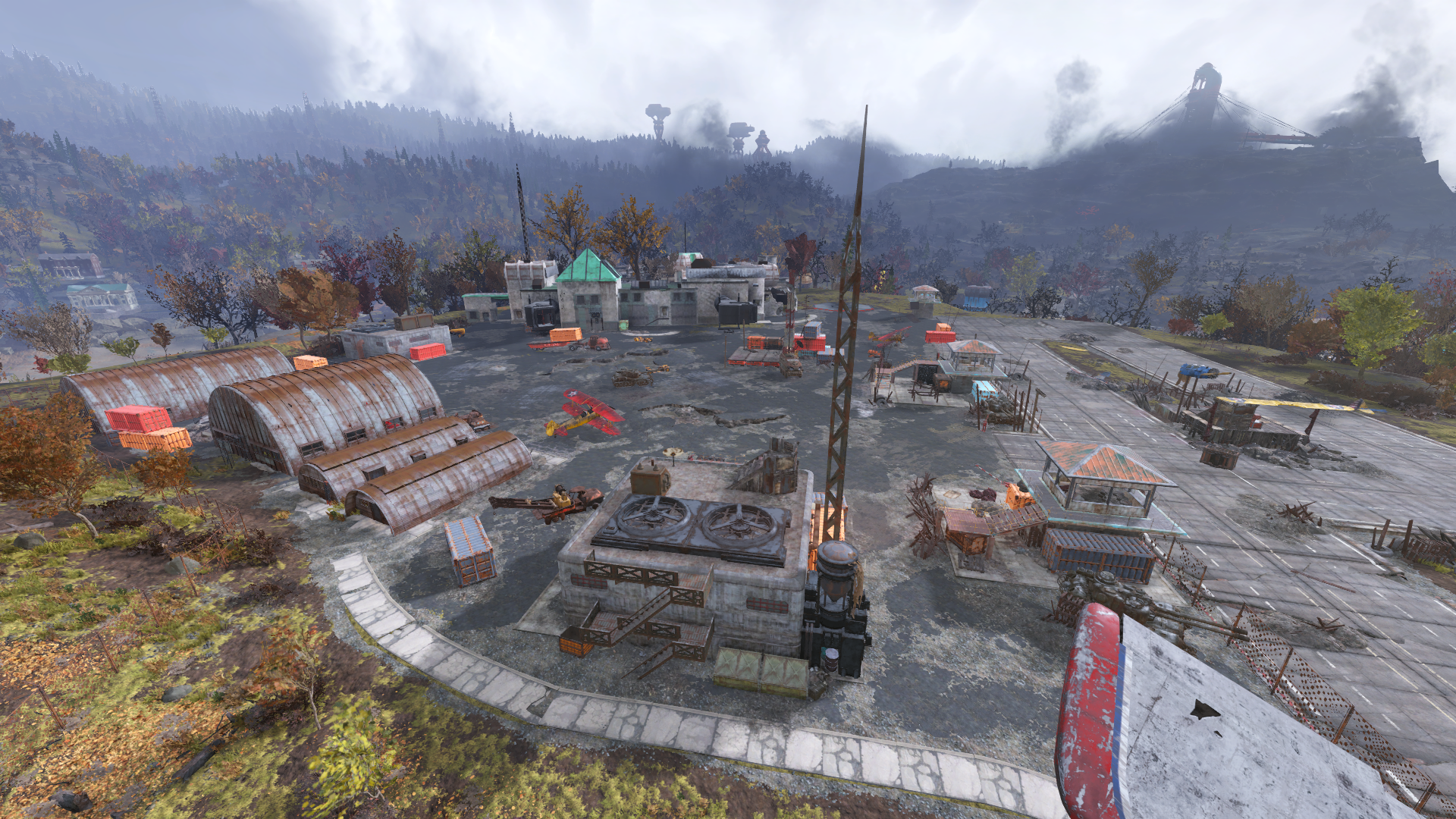 The tarmac and some of the out-buildings have been fortified by super mutants.