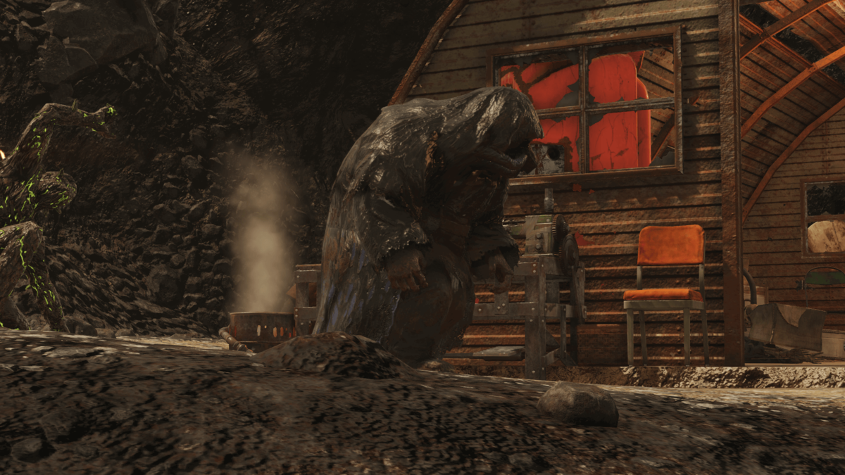 A bleak remnant of Appalachia's storied past, the mole miners are humans that make their homes in the many caves and mines of the region, trapped within their deteriorating mining suits. The mole miners are frenzied combatants who attack anything they perceive as a threat.[1]