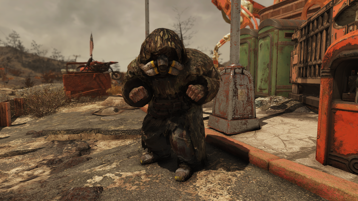 The particular cause of their significant degeneration is unclear; whether it be radiation, the Scorched Plague, the toxic atmosphere of the Ash Heap or a combination of all three is unknown. However it may be, they appear to be highly communal and are rarely if ever encountered alone or outside their organized groups lead by foremen and supervisors.