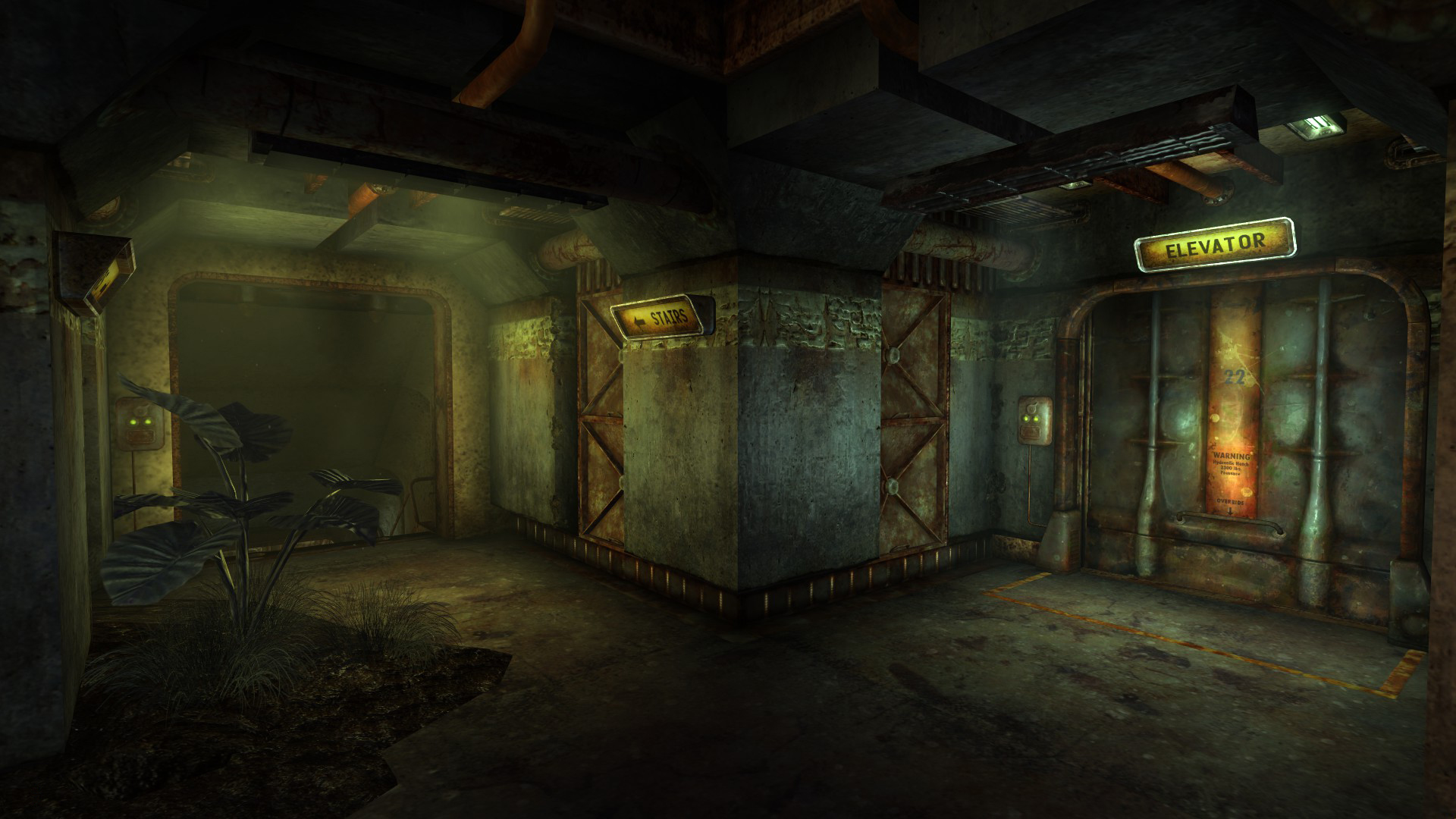 一旦进入避难所,信使就会来到一个有电梯和楼梯的房间。从这里开始,玩家角色将在整个避难所中遇到孢子载体,孢子植物和巨型螳螂。避难所分为五层,不同的楼层可以通过修复避难所内的主电梯进入(需要修理技能50)或通过垂直楼梯进入。