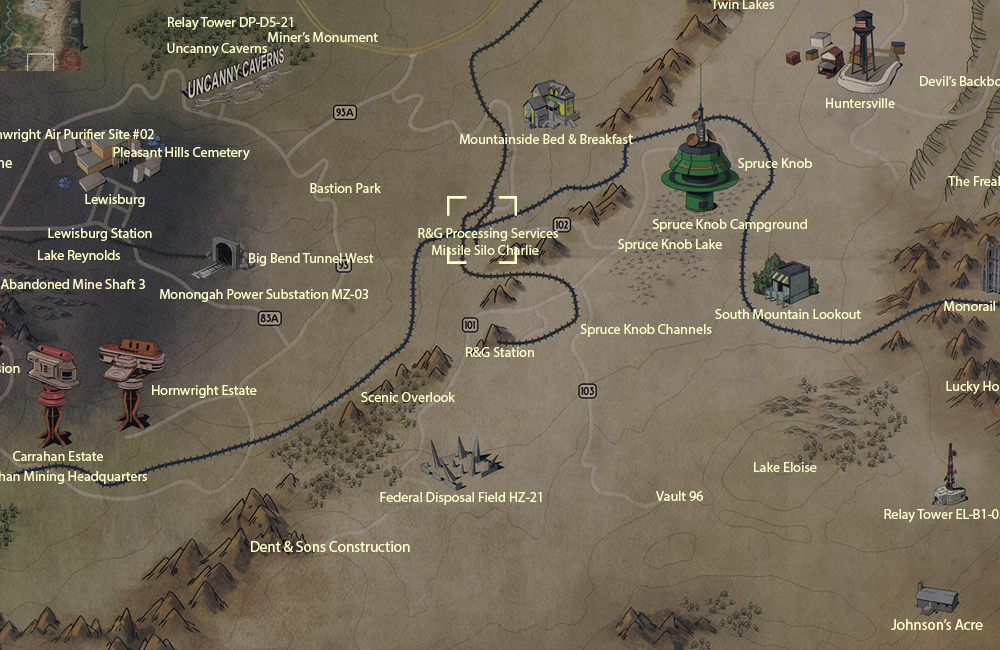 R&G Processing Services is a location in the Savage Divide region of Appalachia in 2102. Site Charlie is connected to its main building.
