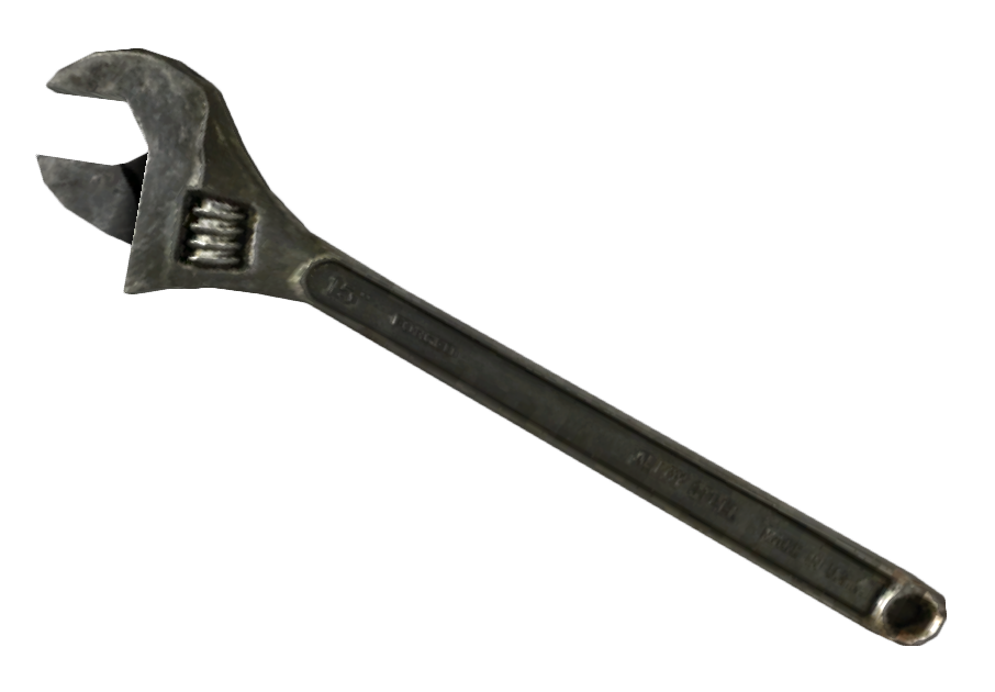 The spanner was cut from the final version of the add-on and can only be retrieved from the object database through the use of console commands. The spanner is a wrench - with a value and weight higher than that of other wrenches - equippable as a weapon, and the only one of its kind. As it was cut from the game, it was left unfinished; it is held in a strange manner (upside down and against the player's arm). It will knock down enemies on hits.