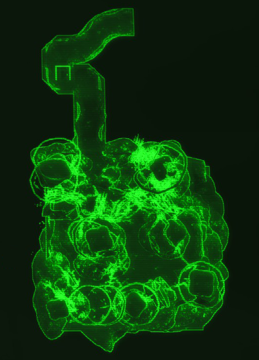 The site features a half-buried UFO in a hillside with a skid area of destruction including broken trees, flattened ground and scattered flames. The surrounding trees will be permanently on fire, making the location easier to spot from afar. There is no way to enter the UFO, nor anything to scavenge at the crash, but next to the still burning UFO is a trail of green blood. The Sole Survivor can follow the trail slightly north, down into a ravine and then into a nearby unmarked cave.