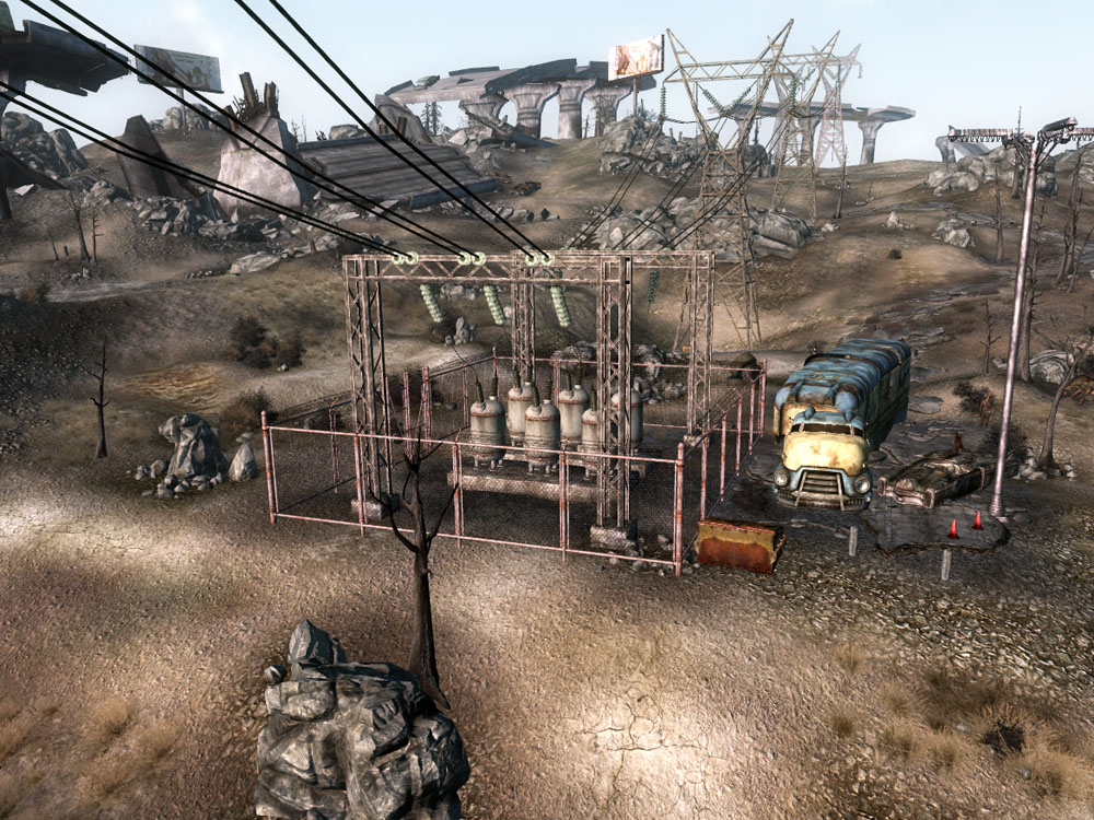 電站本體被鐵絲網包圍。旁邊的一輛被廢棄的大卡車裡有一枚小型核彈,三箱彈藥(可能裝有Missile導彈),兩個鐵盒(可能裝有Stealth Boy隱身小子等物品),還有幾種自製武器部件。